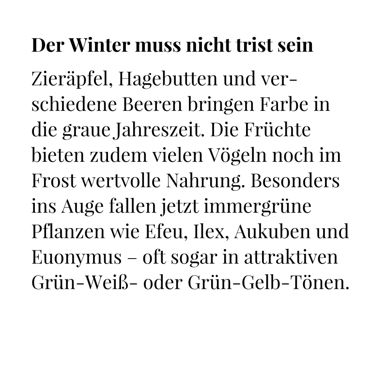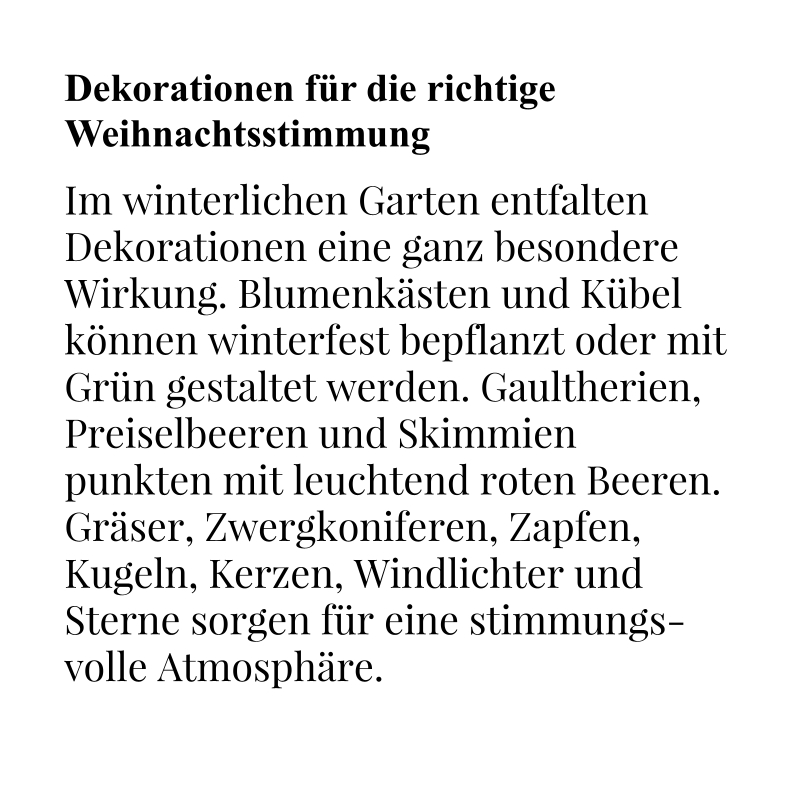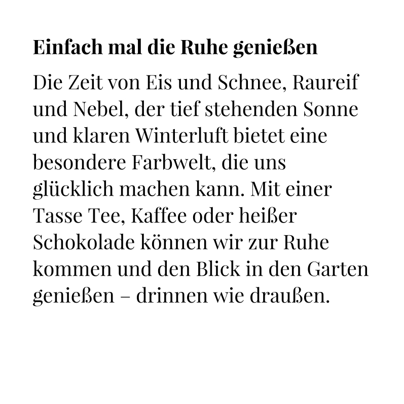 Im Januar finden Sie hier: Der Cottage-Garten. Schauen Sie wieder rein, es lohnt sich. Wir wünschen Ihnen ein frohes Weihnachtsfest und einen guten Start ins neue Jahr.