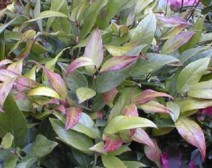 Das Laub verfärbt sich im Winter leuchtend karminrot. Der immergrüne